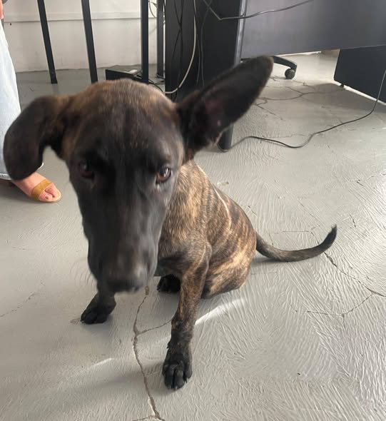 ¡Hola! Buen día. Esta cachorrita llegó a la comisaría de Guadalajara. Al parecer, es una pastor belga malinois de aproximadamente 6 meses. Está en busca de un hogar y es muy noble y dócil.