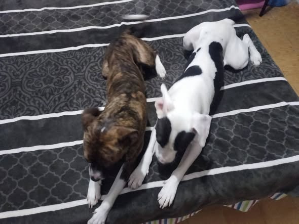Hola, buenas tardes. He rescatado a estas dos perritas, que son hermanas. Ya están esterilizadas, pero actualmente se encuentran en un departamento pequeño, lo cual no es el ambiente adecuado para ellas. Necesitan un espacio más grande.