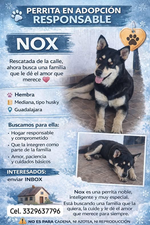 Hay historias que conmueven, pero también pueden tener un final feliz 💔✨ Nox es una perrita rescatada de la calle. Aunque no conocemos todo lo que ha vivido, sabemos que merece una segunda oportunidad 🐾❤️ Es noble, inteligente y tiene unos ojos que solo buscan amor… ese amor que quizás nunca ha recibido. Hoy está esperando a alguien que la vea, que la elija y que le cambie la vida para siempre. No se trata solo de una adopción, sino de ofrecerle un hogar, una familia y un lugar donde finalmente pueda sentirse segura 🏡 🙏 Buscamos para ella: - Un hogar responsable - Que la hagan parte de su familia - Paciencia, cariño y cuidados No es para cadena, azotea ni reproducción. Es para alguien que entienda que adoptar es un acto de amor de por vida. Si no puedes adoptarla, por favor ayúdanos compartiendo… a veces un simple mensaje puede cambiarlo TODO 💫 📩 Interesados: Inbox 📱 3329637796 Nox te está esperando… ¿serás tú? 🐶❤️
