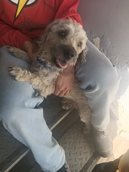 ¡Buenos días! Hoy me siguió este perrito muy cariñoso. Lleva un collar azul y actualmente lo estamos resguardando en el motel de Carrillo. Esperamos que aparezcan sus dueños, o si alguien está interesado en adoptarlo, sería genial, ya que no podemos quedárnoslo porque ya tengo varios animalitos. 🥹