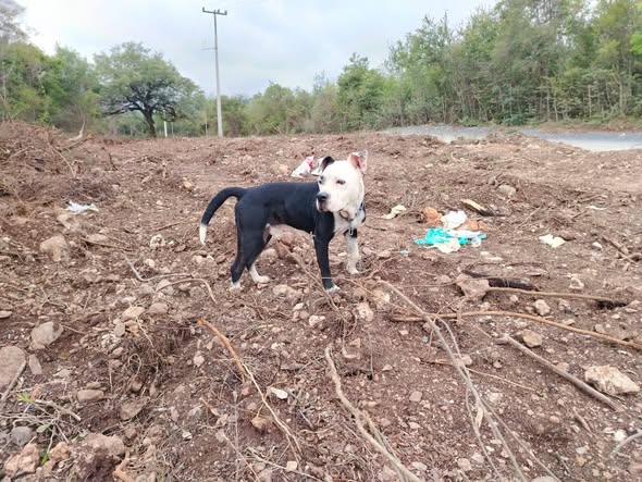 Urgente adopción responsable Este perrito se encuentra en el Barrial, Santiago. Está solo y creemos que se escapó de algún lugar, ya que tiene una cadena en el cuello. 😔 Está muy delgado y tiene muchas garrapatas (ya le hemos administrado un Nexgard). Queremos encontrarle un hogar, ya que en el lugar donde se encuentra no hay personas que puedan resguardarlo o alimentarlo. Es un macho adulto, mezcla de pitbull, muy cariñoso con las personas. 🥹