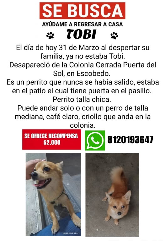 ¡Por favor, ayúdenme a compartir! 🙏🏼 Este es el perrito de una vecina. Ya han desaparecido dos perritos chihuahua en la colonia, lo cual es preocupante. Esto sucede en Escobedo.