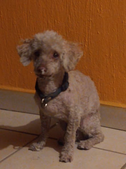 Ayer por la noche encontré a este perrito caminando sobre González Gallo, a punto de ser atropellado. Es un macho que lleva un collar azul y tiene un corte de pelo reciente. Es un perrito mayor y presenta problemas en su columna, ya que está arqueada y camina con dificultad. Estamos buscando a sus dueños.