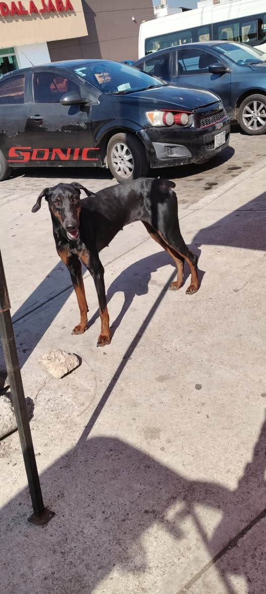 Se ha avistado un perro frente a la farmacia Guadalajara en Villas La Piedad. Parece estar perdido y está buscando a su dueño. Si alguien lo reconoce, por favor, ayúdenos a encontrar su hogar.