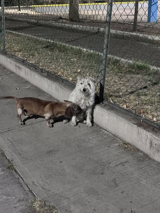 Hola, buenas noches. He visto a estos dos perritos en el parque de Las Arboledas, cerca de la avenida Universidad. Parecen mayores, por si son de alguien. Estoy intentando resguardarlos, pero me está costando un poco porque se asustan y huyen. Se ven desubicados y un poco desesperados. Si alguien los reconoce, por favor, háganmelo saber.