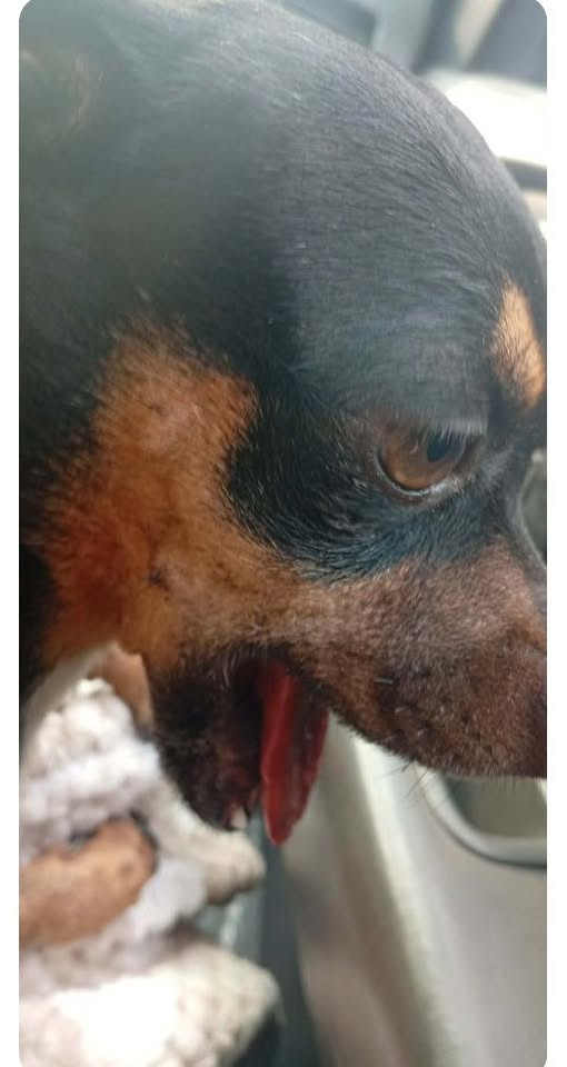 Se busca a los dueños de este perrito que fue atacado por otros perros y sufrió una fractura de mandíbula. Una señora lo llevó a consulta, pero no sabemos qué determinarán las veterinarias y necesitan que los dueños tomen la mejor decisión para él. Si los conoces, por favor avísales. El perrito fue encontrado en la calle Sipobladur con privada Presa, Col. Vamos Tamaulipas etapa 3.