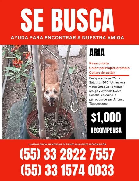 ¡Ayúdanos a encontrarla! Nos han informado que ha sido vista con un grupo de perros en San Alfonso, Av. Ing. Tello, colonia Los Altos. ¡Por favor, cualquier información es bienvenida!