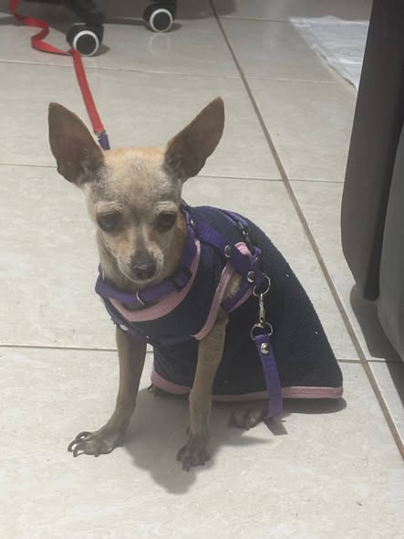 Se encontró una perrita el 7 de abril cerca de la Glorieta de la Normal. La ropa y la correa que lleva son de mi propiedad, ya que la encontramos sin accesorios.
