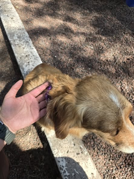 Se encontró un perro en el parque de Plutarco. Lleva un collar morado, pero no tiene placa. Parece ser de tamaño grande. Ubicación: Col. GRANJAS MÉXICO. ¡Lo tengo en resguardo!