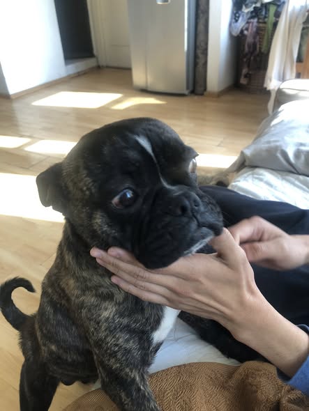 He encontrado a este perrito cerca de mi casa en la calle Montaña. Estaba desorientado y se fue siguiendo a un chico hasta la puerta de su casa, pero él dijo que no era suyo y no había nadie más cerca. Se nota que es un perro de casa y parece que se ha extraviado recientemente. Lo tengo resguardado. ¡Espero que su familia aparezca pronto! Si pueden, por favor compartan.