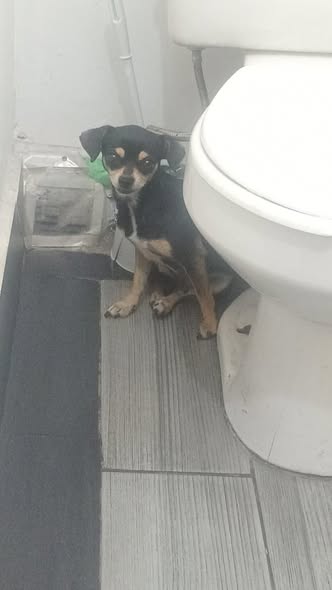 ¡Hola, buen día! Queridos vecinos de las colonias cercanas a San Francisco Culhuacán y Santa Anna, hemos encontrado a esta perrita. Ella llegó corriendo a un negocio y se metió dentro. Si alguien la está buscando, por favor háganoslo saber.