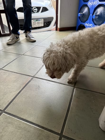 Estamos buscando al dueño de este perrito. Parece ser mayor y fue encontrado cerca de Arcos Guadalupe. Está muy cansado y no puedo tenerlo mucho tiempo debido a mi trabajo. Si alguien puede ayudar a resguardarlo, sería de gran ayuda. Además, tenemos la sospecha de que no ve bien.