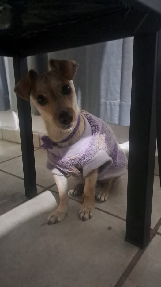 ¡Hola! Buenas noches. Se ha encontrado a esta perrita cerca del Oxxo, en la zona del parque de perros. Les agradeceríamos mucho si pueden ayudar a difundir esta información para localizar a sus dueños. La perrita lleva un suéter y un collar morado.