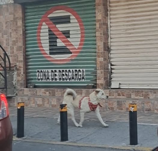 ¡Hola! He visto a este perrito corriendo por la calle 14, cerca del semáforo de las torres. Parece que no está acostumbrado a estar en la calle. Tiene una pechera roja.