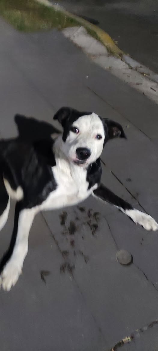 Hoy, mientras esperaba un autobús, vi a un perrito en el suelo. Al principio pensé que estaba muerto, pero al hablarle, levantó la cabeza aunque no se pudo mover. Siempre llevo algo de comida para los perros que encuentro, pero este perrito parecía muy desconfiado. Le acerqué un poco de comida y noté que parecía estar lastimado, ya que no se levantó en ningún momento, solo intentó levantar la cabeza para comer. Afortunadamente, comió bien. Lamentablemente, no pude revisarlo, pero tengo la impresión de que pudo haber sido atropellado. Lamento no haber podido ayudarlo más, pero en ese momento debía irme en el autobús. Esto ocurrió en Juárez esquina con Rafael M. Hidalgo, frente a la veterinaria, alrededor de las 9:00 pm. En la foto se pueden ver manchas, que son de la comida que le di, ya que tenía mucha hambre.
