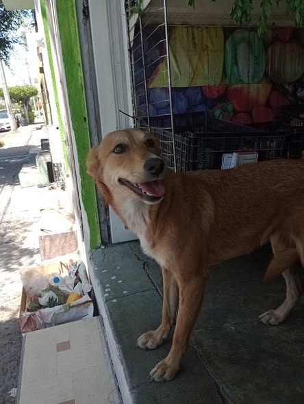Hola, buenas tardes. Quiero informarles que hay una perrita en la calle Topacio, en la colonia Santa Catarina, cerca de la Primaria "Reforma". Ella parece estar asustada y creemos que podría pertenecer a alguien. Si alguien la está buscando o si se le ha escapado de casa, aquí está la perrita.