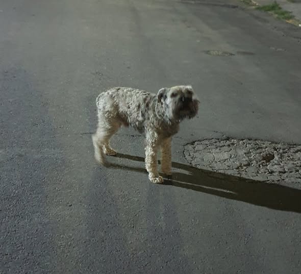 Si este perrito es de alguien, lleva un collar marrón con un broche rosa. Ha estado varios días en la calle Valle de Yuriria, en Fuentes de Aragón, y no se deja agarrar.