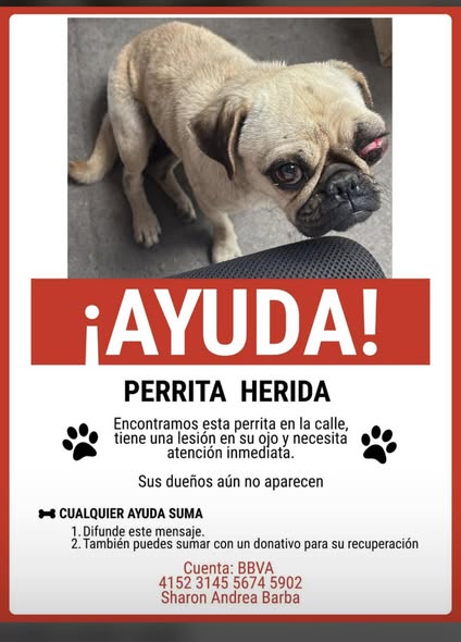 Hola a todos. Mi amiga encontró a esta perrita en Pintillo, Santa Rosa. Si alguien la reconoce, por favor contáctenme. También agradeceríamos cualquier apoyo para su atención, ya que está bastante lastimada. Aquí está el número de cuenta para quienes deseen ayudar: 4152314556745902 BBVA a nombre de Sharon Andrea Barba. Nos han comentado que la prioridad es atender su ojito. Agradecemos de corazón a todas las personas que han respondido, contactado y compartido esta publicación. ¡Dios les bendiga! 🙏🏾😢