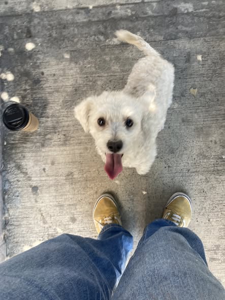 ¡Hola! Buenos días. He encontrado a este perrito sin collar. No parece haber estado mucho tiempo en la calle, ya que es muy juguetón. No sabe cruzar la calle y se queda en el lugar donde está. Se encuentra entre la calle Reforma y Jesús, en el centro de Guadalajara, frente a una tienda. Espero que pueda reunirse pronto con su familia. 🥲