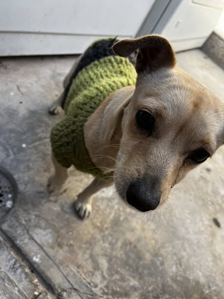 He encontrado a esta perrita, estuvo a punto de ser atropellada. La vi en la calle Dostoievski, cerca de Indústrias. Es muy tranquila.