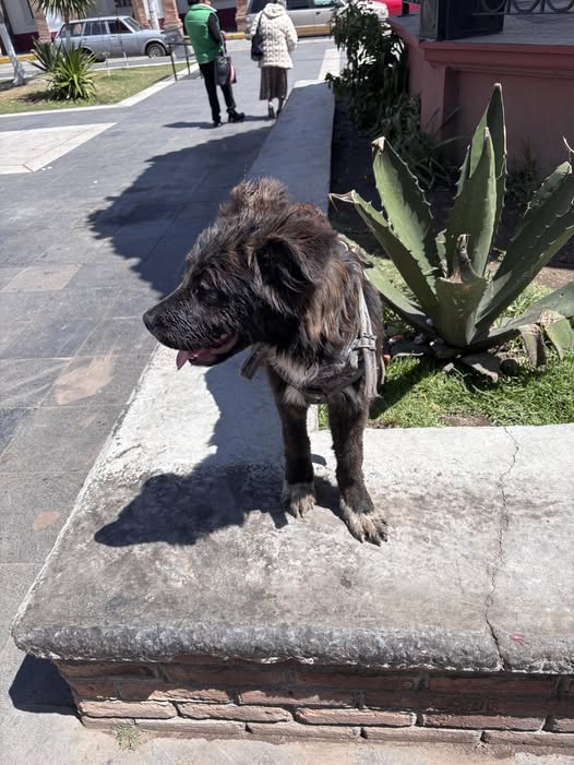 Se ha avistado un perro en la plaza de San Felipe Tlamimilolpan. Lleva una pechera gris y parece que ha estado perdido por un tiempo. Sigue a las personas, pero no se deja agarrar. Si alguien tiene información o puede ayudar, por favor contáctenos.