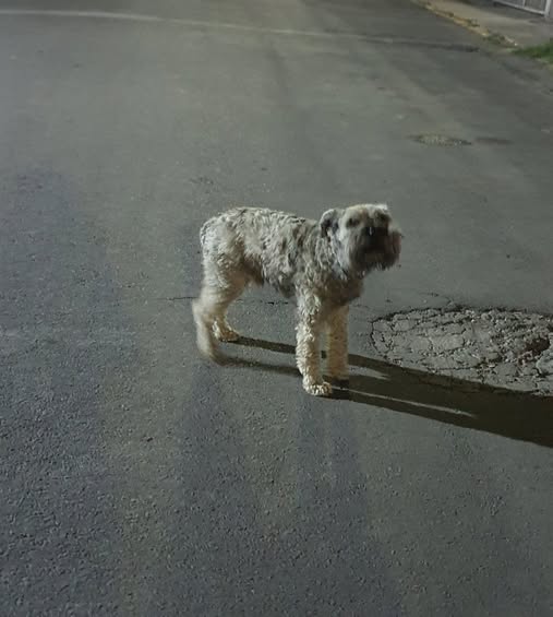 Si este perrito es de alguien, se encuentra en Valle de Yuriria. Ha estado aquí varios días y lleva un collar marrón con un broche rosa. No se deja atrapar fácilmente.
