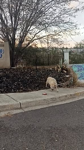 Es muy triste ver a esta perrita en esta situación. Al parecer está embarazada y la vi comiendo entre las cenizas, tiene su boquita manchada de cenizas. Le dejé una bolsa de croquetas. Espero que encuentre un buen lugar o refugio donde pueda tener a sus cachorritos. Se encuentra cerca de Av. Matatlán, por las Urbi.