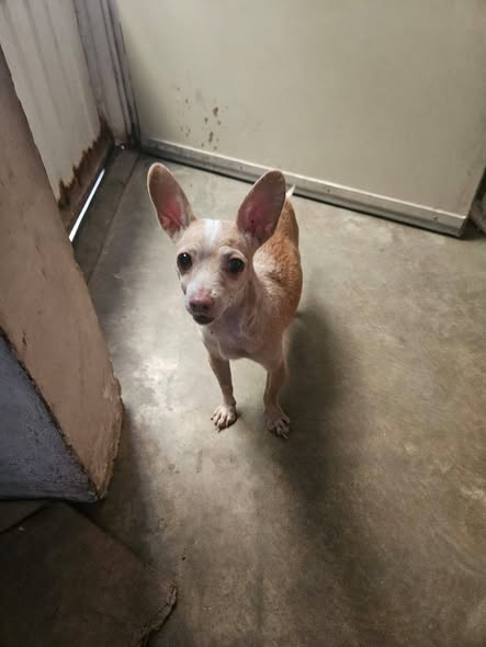 Encontré a esta perrita cerca del OXXO de Yepomera. Casi la atropellan, así que espero que sus dueños aparezcan o que alguien esté interesado en adoptarla. No puedo tenerla mucho tiempo porque ya tengo dos perros grandes.