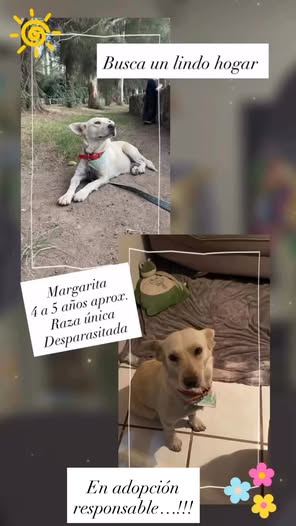 Les presento a Margarita, una perrita que rescaté el 09 de enero en condiciones muy difíciles. Había parido recientemente y, lamentablemente, le quitaron a sus cachorros y la abandonaron. Margarita tenía anemia, dio positivo a ehrlichia (ya se ha recuperado), estaba deshidratada y muy débil. Hoy, ella es una perrita feliz, sana y muy cariñosa. Estoy buscando un lindo hogar para ella. Si alguno de ustedes está interesado en adoptarla o puede ayudarme a difundir su historia, realmente apreciaríamos su apoyo.