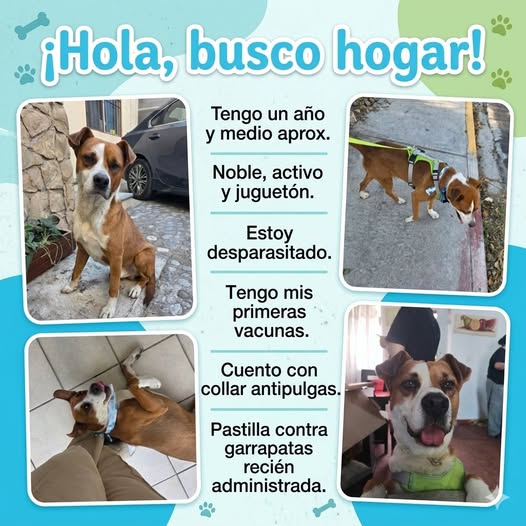 ¡URGENTE! BUSCAMOS UN HOGAR PARA ESTE PERRO ❤️ Hola a todos, He encontrado a este perrito en mi casa y ha decidido quedarse. Hemos estado buscando a sus dueños en redes sociales durante varios días, pero no hemos recibido respuesta. Debido a limitaciones de espacio, no podemos adoptarlo, pero queremos encontrarle un hogar donde lo cuiden y lo quieran mucho. Es un perro muy bueno, amigable, activo y juguetón ❤️ Descripción del perro: - Macho, talla grande (aproximadamente 15-20 kg) - Edad: entre 1 y 2 años - Ya está bañado, tiene collar antipulgas, ha recibido sus primeras vacunas y se le ha administrado la pastilla contra garrapatas. Su salud está bien cuidada. Está pendiente de esterilización, y podemos apoyar económicamente para ello. Lo tengo resguardado temporalmente, pero debido a limitaciones de espacio, alergias de mi esposo y la presencia de un niño pequeño en casa, no puedo seguir cuidándolo. Busco una familia responsable que realmente lo quiera y lo cuide. 🙏🏼❤️