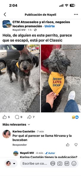 Hola, buenas noches. Como muchos ya saben, hemos visto numerosas publicaciones sobre esta perrita llamada Nirvana. Es una hembra muy tranquila y noble, y ya está esterilizada. Si alguien está interesado en adoptarla, por favor, contáctenos. Su cuidadora no ha mostrado intención de buscarla, así que ayudemos a que encuentre un hogar.