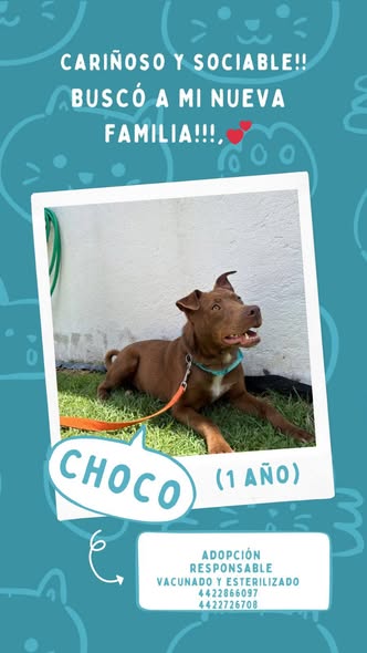 ¡Hola! Soy Choco. Antes vivía en la calle y pasaba mucho frío y hambre, hasta que conocí a Yuri, quien me rescató. Me dio de comer pollo y otras delicias, me bañó y me hizo lucir bien. Ahora tengo una camita caliente. He sido llevado al veterinario, donde me vacunaron. Aunque no disfruté mucho el proceso de esterilización, entiendo que fue por mi bienestar. Ahora estoy listo para encontrar una familia que me quiera. Me encanta jugar con otros perritos, así que si tienes uno, ¡sería genial! ¡Te invito a conocerme! 💕🫶🏻 Para más información, contáctame al: 4422866097