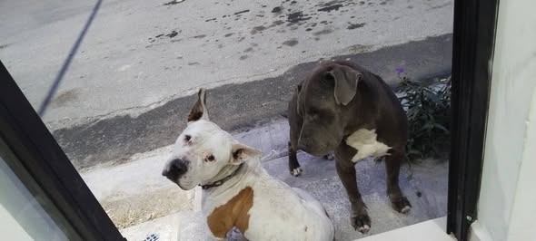 ¿Alguien interesado en adoptar a estos adorables perros? Llegaron a mi trabajo y son muy cariñosos. La perra blanca es hembra y el perro gris es macho.