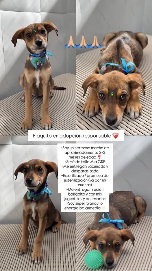 Adopción responsable: mi hijo rescató a este perro de ser atropellado en el periférico. Ya lo hemos desparacitado, vacunado y bañado. Sin embargo, no tenemos el espacio suficiente para cuidarlo. La esterilización adecuada es algo que no podemos realizar por nuestra cuenta. Es un perro muy tranquilo y cariñoso.