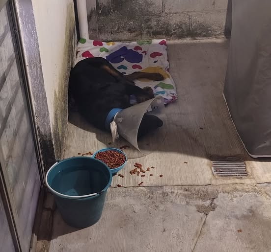 ¡SE DA EN ADOPCIÓN! Hace unos días, este perrito llegó a mi casa. Tenía una soga muy apretada que le quité, le di de comer y se quedó afuera. Le hice una pequeña casita improvisada con la esperanza de que alguno de mis vecinos lo reconociera, pero no fue así. Es un perro muy noble, aunque es grande. Es tranquilo, aunque algo territorial. Recientemente, tuvo un altercado con otros perros de la vecindad y le lastimaron las orejas. Lo atendí, pero se le infectó, así que lo volví a curar y actualmente le estoy administrando antibióticos. Por eso, lleva un cono en la cabeza. Desafortunadamente, no puedo quedármelo, ya que tengo tres chihuahuas en casa que son peleoneros y territoriales. Mi casa es pequeña y no tengo cochera. En la calle, los perros grandes de los vecinos lo han atacado varias veces. ¡Por favor! Si alguien tiene un buen espacio o un albergue que pueda acogerlo, yo puedo ayudar con los gastos. Me urge encontrarle un hogar, ya que está en un patio muy pequeño y se ve triste, pero no puedo sacarlo ni tenerlo dentro de mi casa. Si alguien pudiera darle una mejor vida, de verdad es un perrito muy noble y bonito. Yo le llamo 'negrito'. ¡Muchas gracias por su atención!
