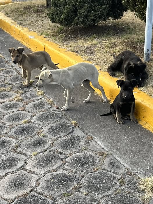 Busco a alguien que pueda ayudar a recoger a estos cuatro perritos. Lamentablemente, no tengo coche y no puedo llevarlos. Están en Walmart de Zinacantepec y todos son machos.