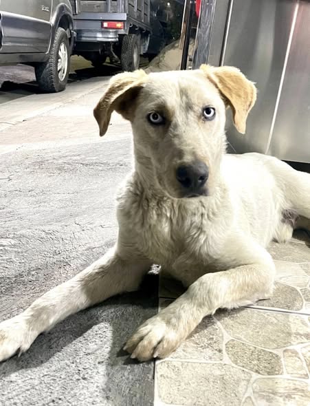 Hermoso perro joven de pelaje suave y ojos azules busca un nuevo hogar. Fue abandonado y, con gran nobleza, espera pacientemente, aunque sabemos que su anterior familia no volverá por él.