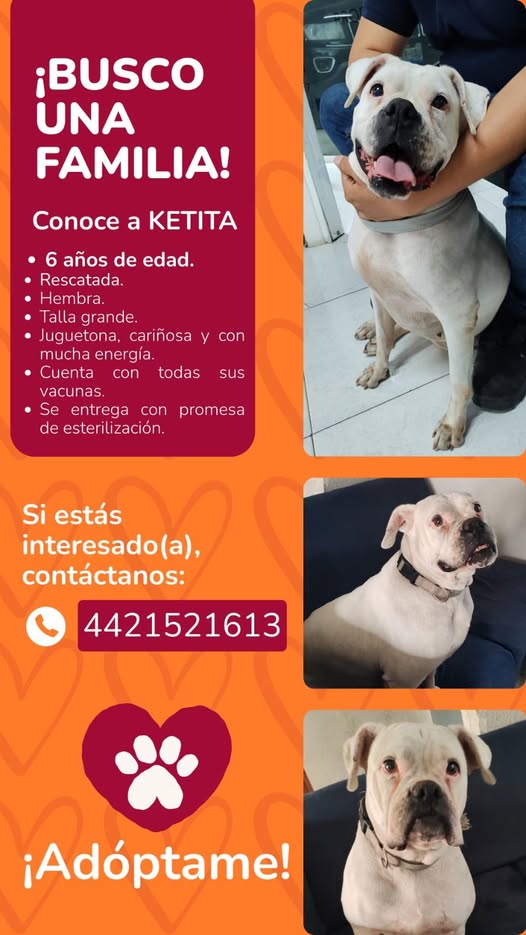¡Buen día! Continuamos en la búsqueda de un hogar para esta perrita. Disfruta de paseos cortos y se lleva bien con gatos y perros de baja energía.
