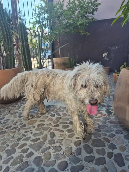 He encontrado un perro en el parque amarillo. Lleva un collar, pero no tiene placa. Parece que ha estado en la calle por un tiempo. Lo tengo resguardado, pero no por mucho tiempo, ya que tengo otras mascotas.
