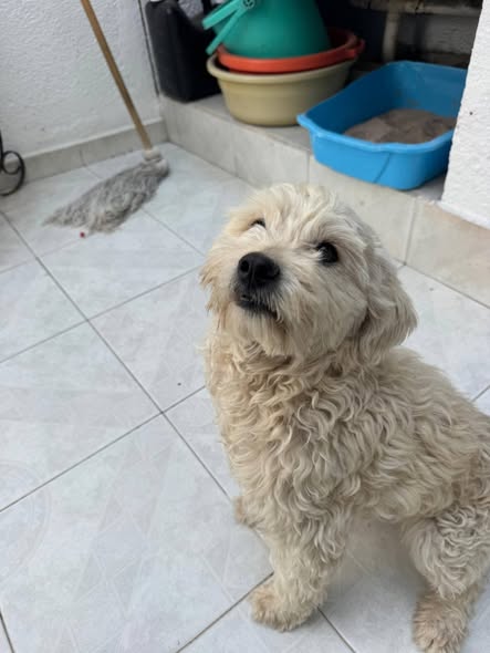 Hola, encontré a esta perrita vagando y adjunto una foto. No estoy seguro si la están buscando, pero parece ser de casa. La encontré en la esquina de la calle Roncopollo con Mar Meridional (colonia Adas), junto a las vías del tren. ¡Ayudemos a que regrese a su hogar! Si es tuya, por favor envía un mensaje al 4421235142.