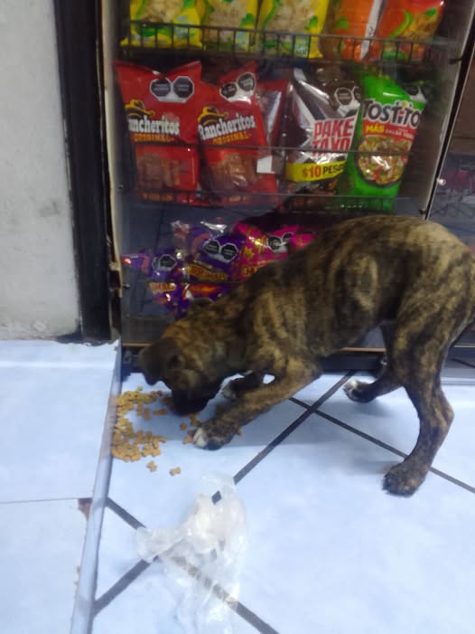 Hoy, un perrito mestizo de tipo pitbull llegó a la tienda donde estaba comprando. Es un cachorro de aproximadamente 2 meses. Parece que se ha escapado de casa, ya que está muy limpio, pero no lleva collar ni placa. La tienda se encuentra en la siguiente dirección: https://maps.app.goo.gl/nzL6qFwvm7pqXAMk8?g_st=ac
