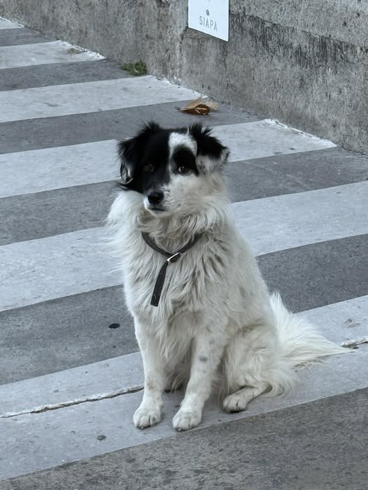 ¡Hola! He encontrado a este perrito afuera del estacionamiento de la UP. Está asustado y lleva un collar, pero no tiene placa. Si alguien lo está buscando, por favor háganmelo saber.