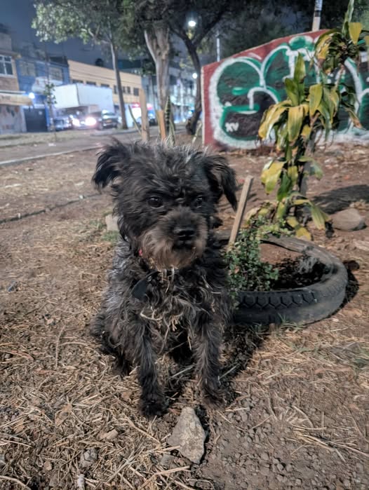 Buenas noches, he encontrado a este perrito en el camellón de Av. Chimalhuacán y Calle Cafetal. Si alguien lo reconoce, por favor envíenme un mensaje. Lo tengo resguardado. Lleva un collar negro con rojo, parecía desorientado y estaba temblando.