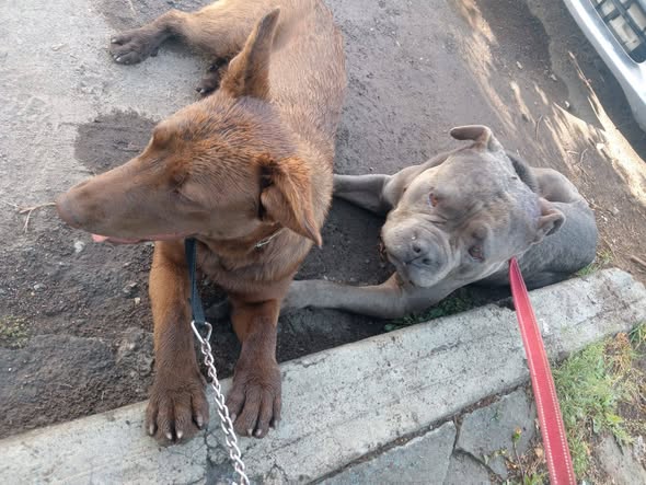 ¡Hola a todos! Les agradecería mucho si pueden ayudar a difundir esta información. Encontramos dos perros en Adolfo López Mateos, frente a los Rancheros del Sur. Parece que están perdidos, ya que llevaban cadenas que se ven rotas. Si alguien los está buscando, están en los Rancheros del Sur. Los hemos amarrado a un árbol, pero no puedo resguardarlos ni moverlos. ¡Gracias por su ayuda!