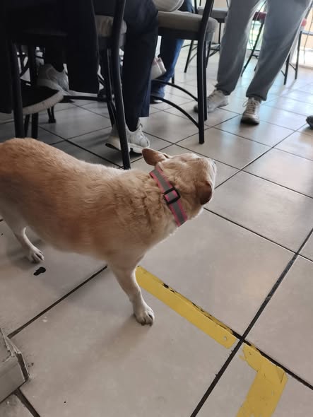 Esta perrita ha llegado a mi negocio. Por favor, ayúdenme a compartir para encontrar a su dueño. Se encuentra en Av. Camino Real, Col. Candiles.