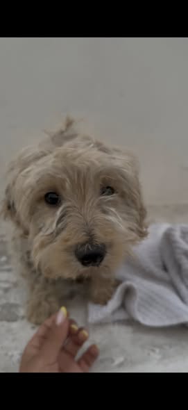 Ayer encontré a este perrito en la estancia. Lleva un collar negro de cuero y es de tamaño pequeño. Podría tener dueños. Ya lo llevé al veterinario, donde lo desparacitaron y vacunaron. Mañana irá a estética. Es un pequeño de aproximadamente 4 meses. Si alguien lo está buscando, por favor contáctenme. 🥹