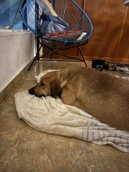 La encontramos en el McDonald's de Las Águilas. Tenía un collar sin placa y estaba muy asustada. Está resguardada y parece que tuvo un hogar. Ayúdanos a encontrarla.