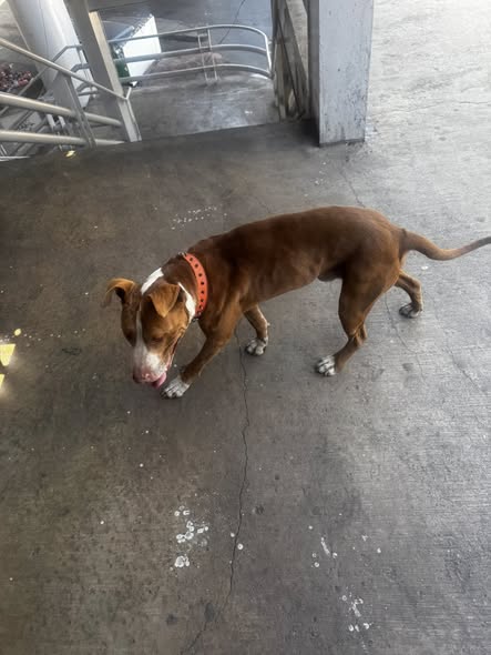 Hemos avistado a este perrito en la estación de metro Aculco. Lleva un collar naranja con picos y tiene una costura en la parte superior de su cabeza, cerca de la oreja izquierda. Se muestra tranquilo, limpio y parece ser de casa. Si es de alguien y se ha perdido, está por la zona.