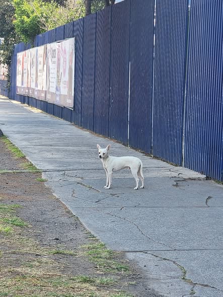 Hoy vi a un perrito cerca del kiosco de la iglesia de Tepalcapa. Se dirigió hacia el Inter sobre la Jiménez Cantú. No se deja acercar; intentamos hablarle, pero no se acercó. Finalmente, cruzó hacia el negocio de barbacoa que está enfrente del Inter. ¿Alguien lo reconoce?