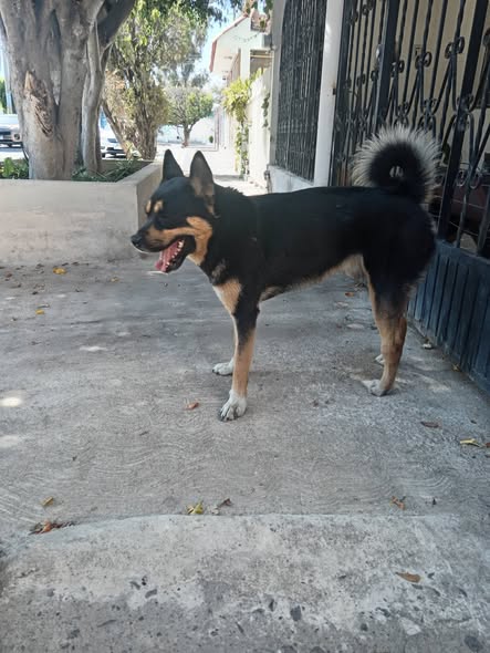 ¿Lo conoces? Este perrito de tamaño grande fue visto en la calle Rondalla, en la colonia Guadalajara Oriente, frente a las escuelas. Me siguió a mí y a mis perros. Es muy amigable y cariñoso, se comió todo el cucharón de croquetas que le di y también tomó mucha agua. Parece tener un problema en sus patas delanteras, ya que no las dobla bien y su forma de caminar es inusual. Quería entrar a mi casa, pero no puedo tener otro perro más; ya tengo cuatro. Por favor, corre la voz o sé la persona que le dé una nueva oportunidad a este querido amigo.